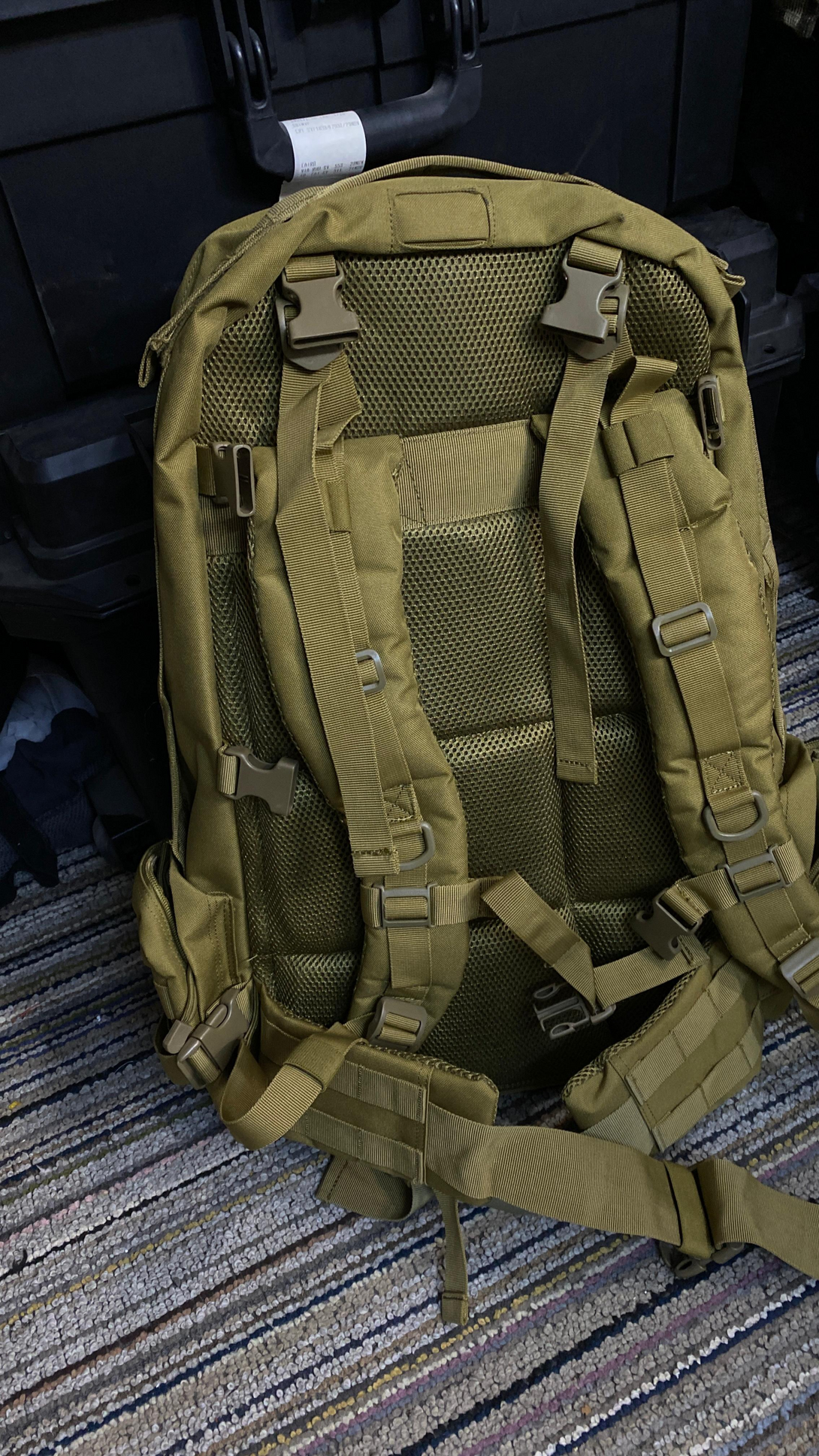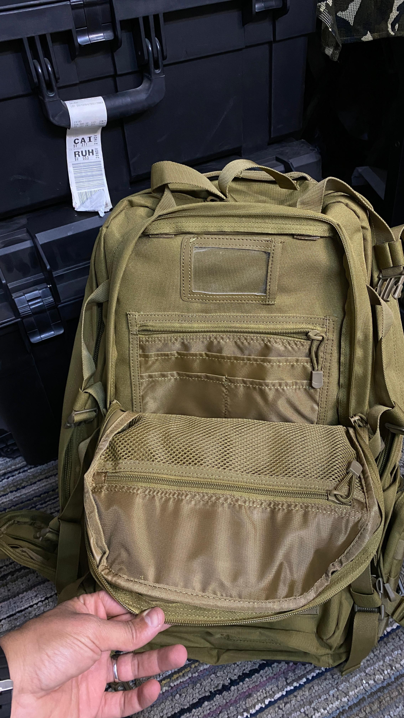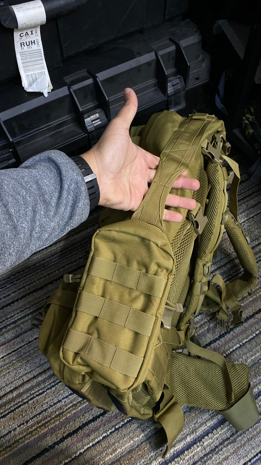 - Molle System: Webbing on the front and sides for attaching additional pouches and gear.